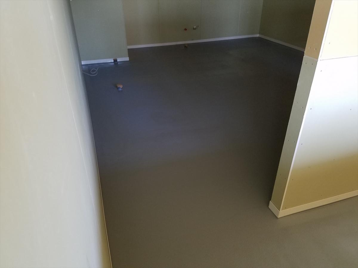 水を使うので塗床材で工事します。