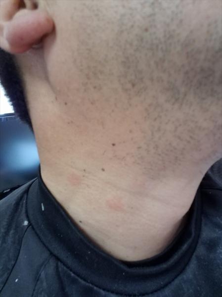 なんだ?首の辺りに?赤くて丸い斑点がwwww